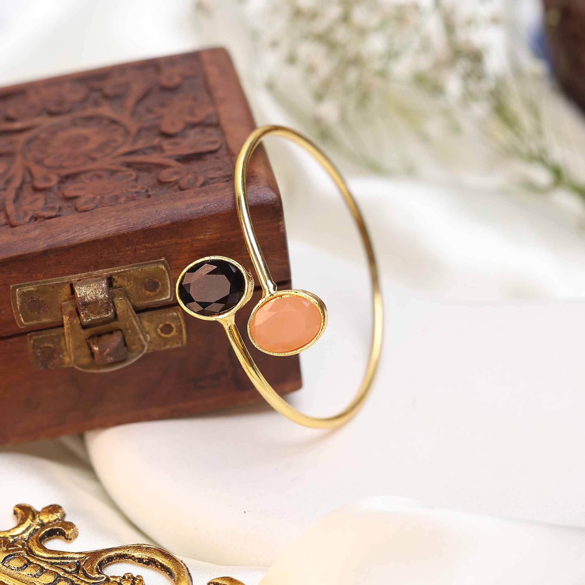 • Premium brass base with detailed stone work