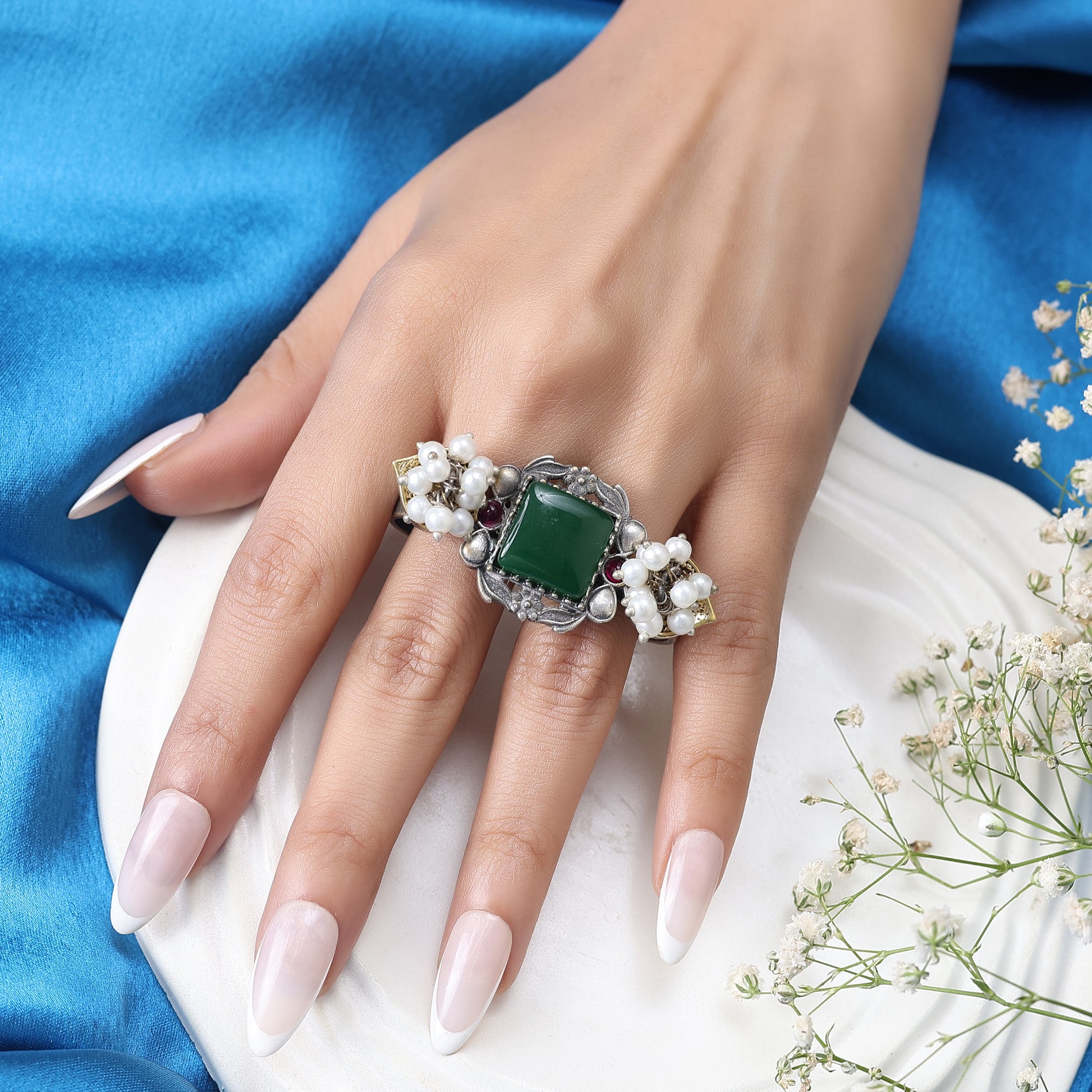 ✔ Handcrafted stone & pearl detailing